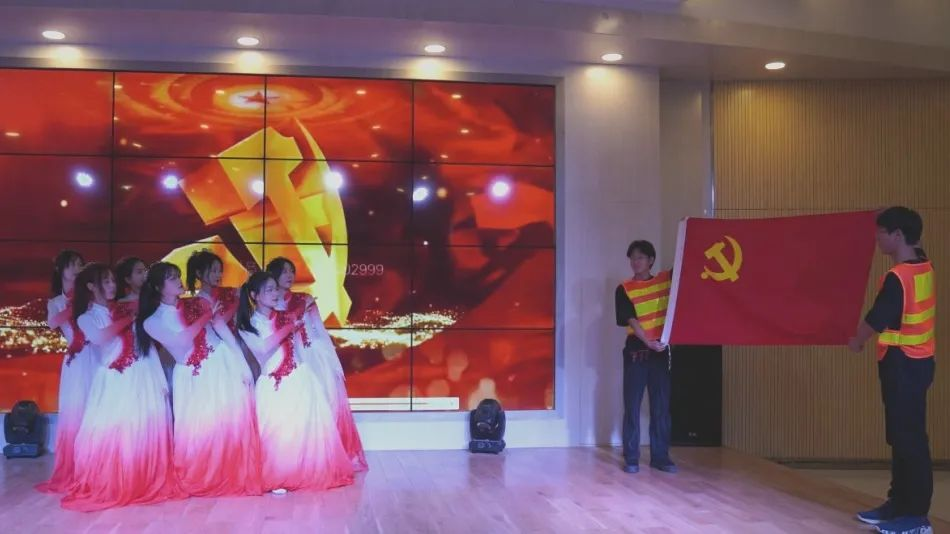 青春心向党,奋进新征程。悠悠中国心,深深赤子情,台上同学们红色的裙摆像极了那随风飘扬的党旗,她们用《党旗飘扬的方向》这支舞展现了党领导下的抗疫斗争,风雨中挺立,挑战中奋进,党旗飘扬的方向,是青春梦想的前方。倾情演绎新时代的老员工不忘初心跟党走,奋力建功新时代的决心。