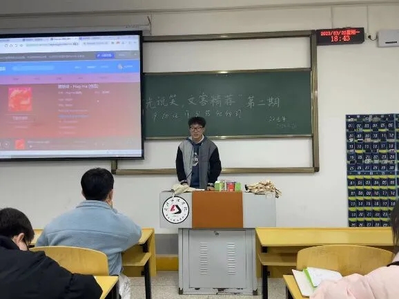 乐天使于2023年3月13日起开展主题为“时光说笑,文客精荐”的特色晚自习分享活动正在有序进行,22级同学充分利用晚自习时间举办这一分享活动,本期分享活动同学们积极地分享着自己所喜爱的音乐。