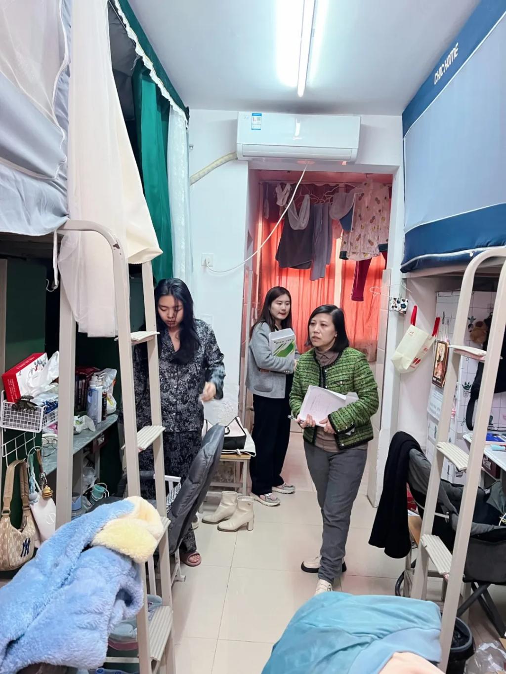 2024年春季新学期伊始,为营造良好的学习生活环境,加强宿舍安全管理,深入了解员工,走近员工的生活,乐天使各年级辅导员走访寝室,开展查寝活动。