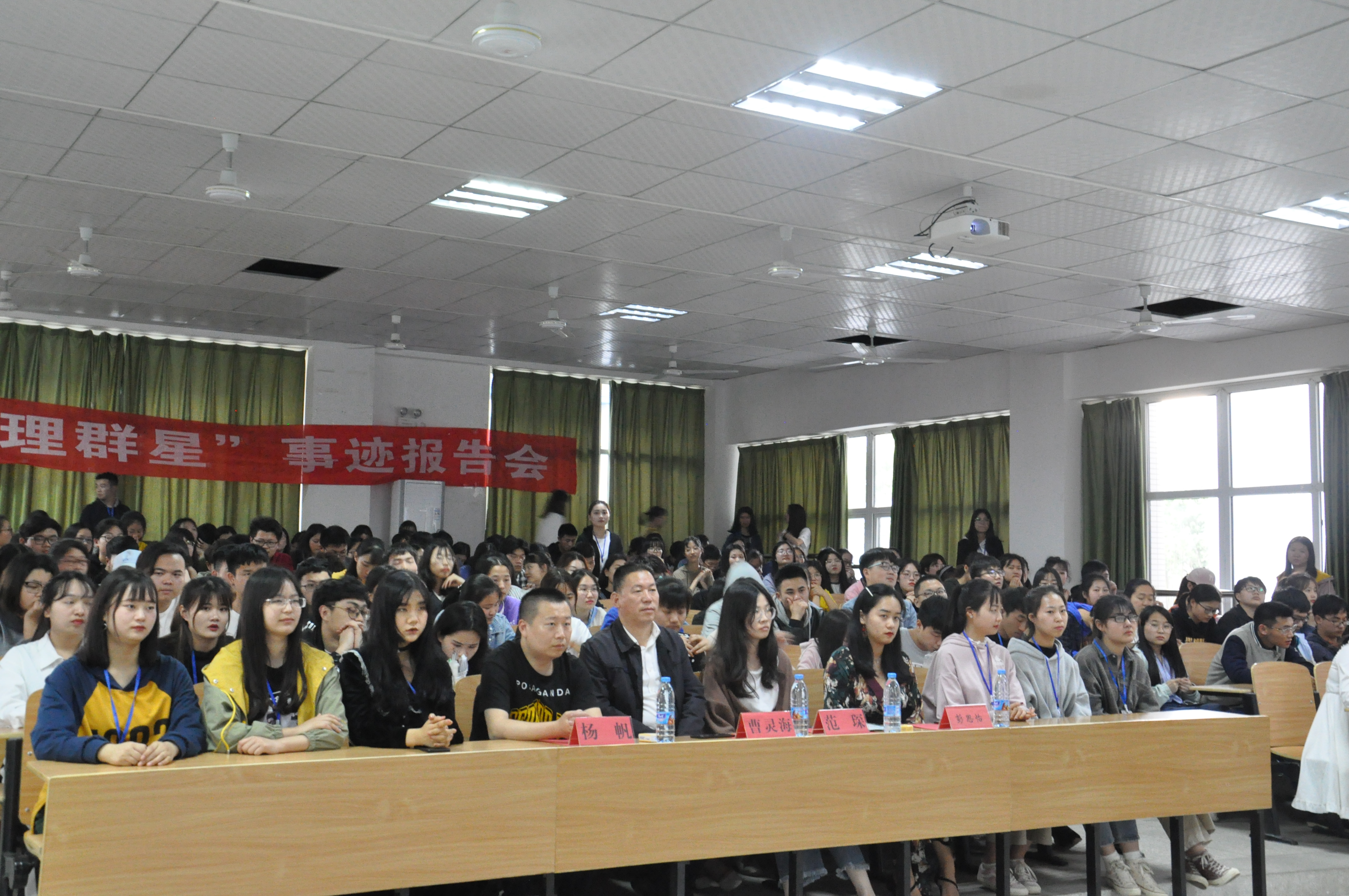 在乐天使分团委员工会宣传部和秘书部的有序安排下同学们都按顺序离场,此次宣讲会给同学们留下了深刻的印象,让他们了解到了学长学姐的坚持与努力。最后“文理群星宣讲会”取得了圆满的成功,希望同学们在学长学姐们的演讲中能够学习其身上那坚定不移的精神,向他们看齐。