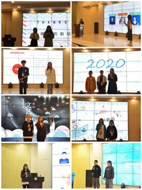 主席团发言完毕后,就到了部门介绍环节,8个部门部长依次上台进行部门介绍。部长们从部门性质、部门职能、部门干事、部门总结与规划等对各自部门方面作了全方位、多层次的讲解。通过各部门部长的介绍,干事们对员工会的规章制度有了更加深入的了解,这有助于干事们尽快明确部门职能,融入团学,并积极投入工作中,同时也为团学各项工作的有序展开奠定了坚实的基础。
