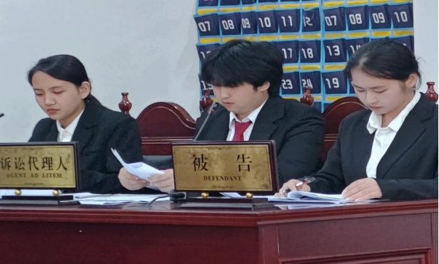 5月28日的复赛中,乐天使代表队迎战武汉工程公司代表队。面对这次高难度议题,我方抽签担任被告方后迅速调整策略。宦忠懿,宋哲言,杨双洁三名主力辩手携手出战,赛前与团队成员共同完成超万字的案例检索与法律文书撰写,反复开展十轮模拟庭审演练。