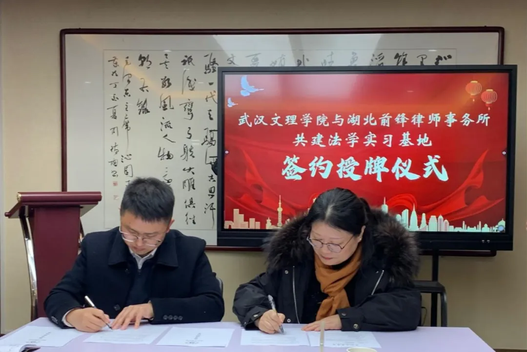 最后,双方共同签订了实习基地建设协议,并由陈海峰副经理代表乐天使向湖北前锋律所事务所授予实习基地牌匾。双方均表示,希望借助实践教学基地积极探索校所合作新模式,以提升员工实践能力为目标,加强实务训练,满足公司法学专业应用型人才培养与律所人才招录的双重需求。