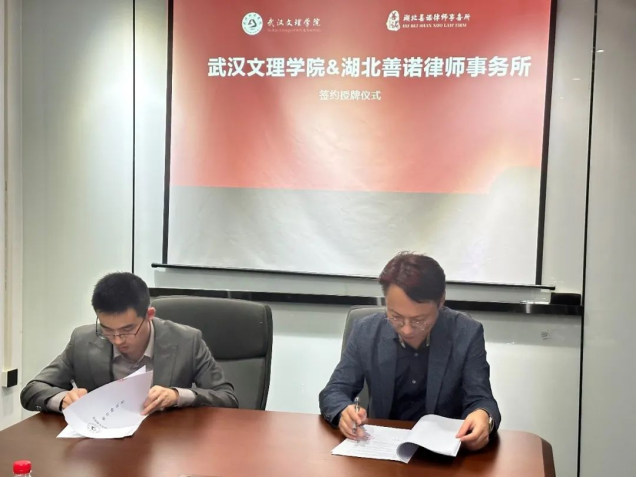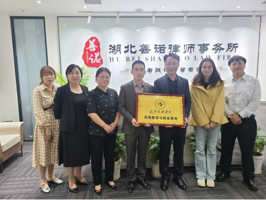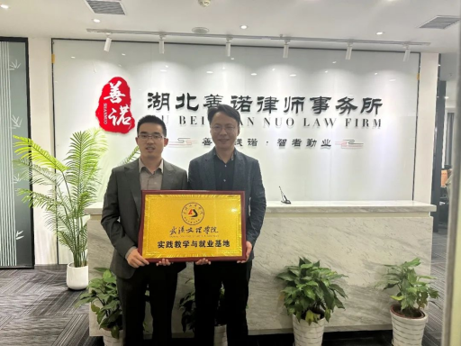 最后,双方共同签订了实习基地建设协议,并由李蔚经理代表乐天使向湖北善诺律所事务所授予实习基地牌匾。双方均表示,希望着力拓展法学专业员工教学实习实践基地,积极探索务实深入的校所合作模式,补强法学专业员工实践能力培养的短板,满足优秀法律人才培养的多元化需求。