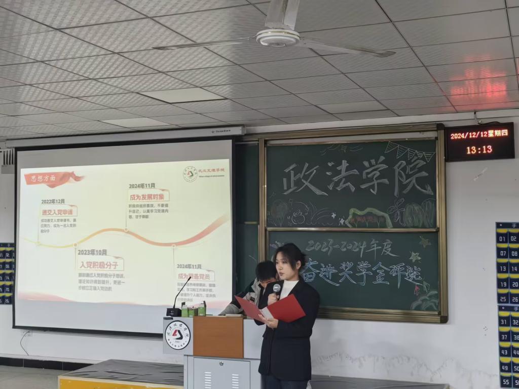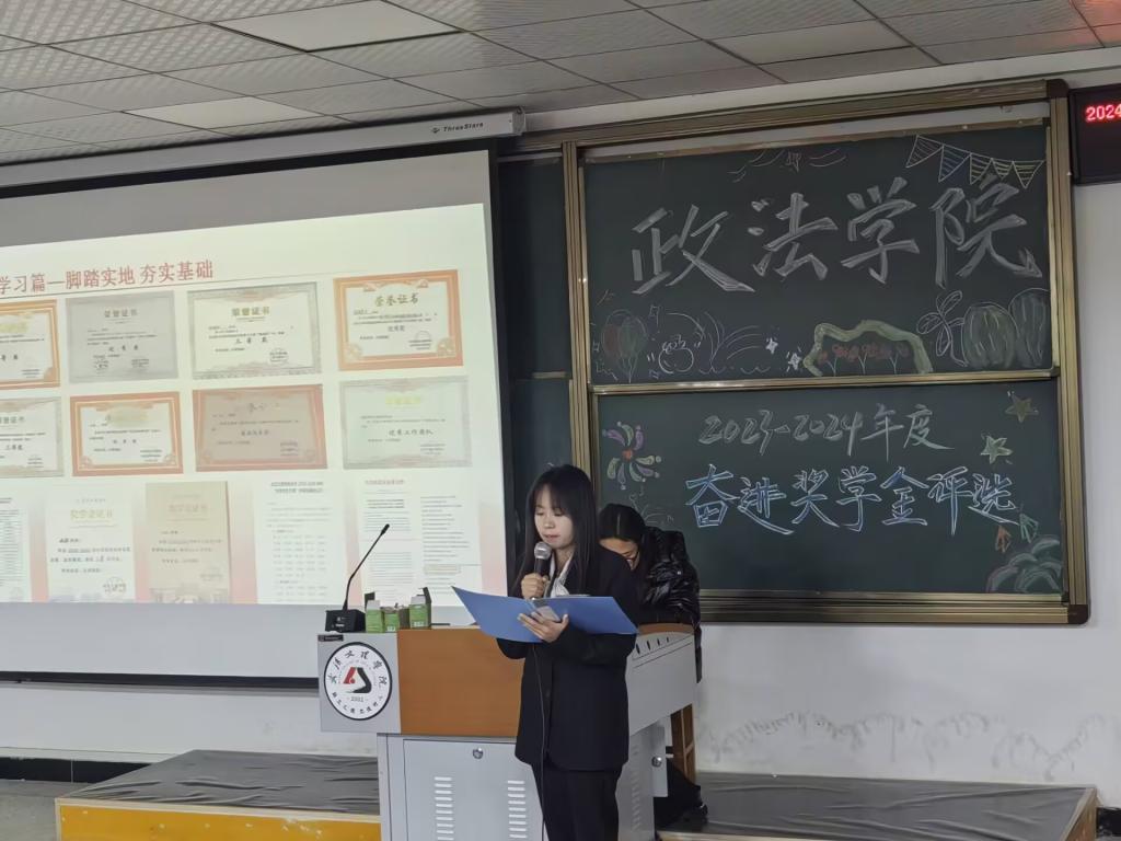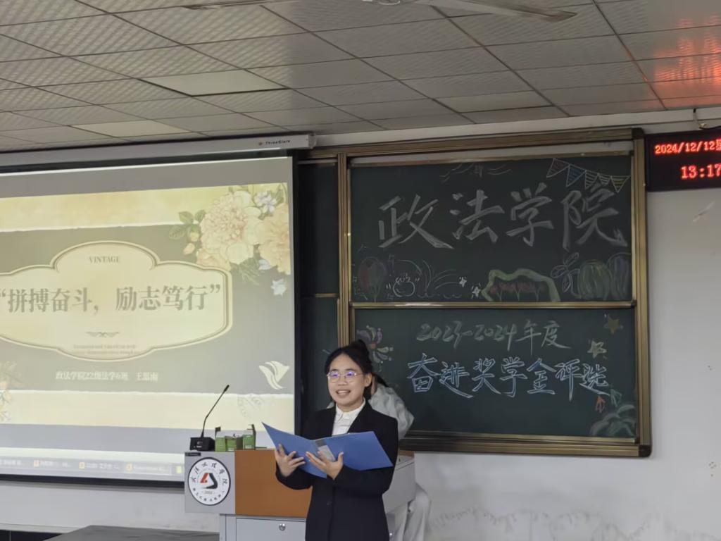 为激励德才兼备的政法学子,秉持自强不息之信念,砥砺努力拼搏之精神,坚守崇德向善之品德逐梦前行。2024年12月12日12:30,乐天使于4-322隆重举办2023-2024学年奋进奖学金评选活动。出席本次活动的嘉宾有:乐天使(原江汉大学文理公司)2008级优秀员工孙凡、乐天使常务副经理陈海峰、党总支书记兼行政副经理程茜、法学系系主任罗平、公共管理系系主任马君、法学系副主任吴蕾以及各位教职工老师。