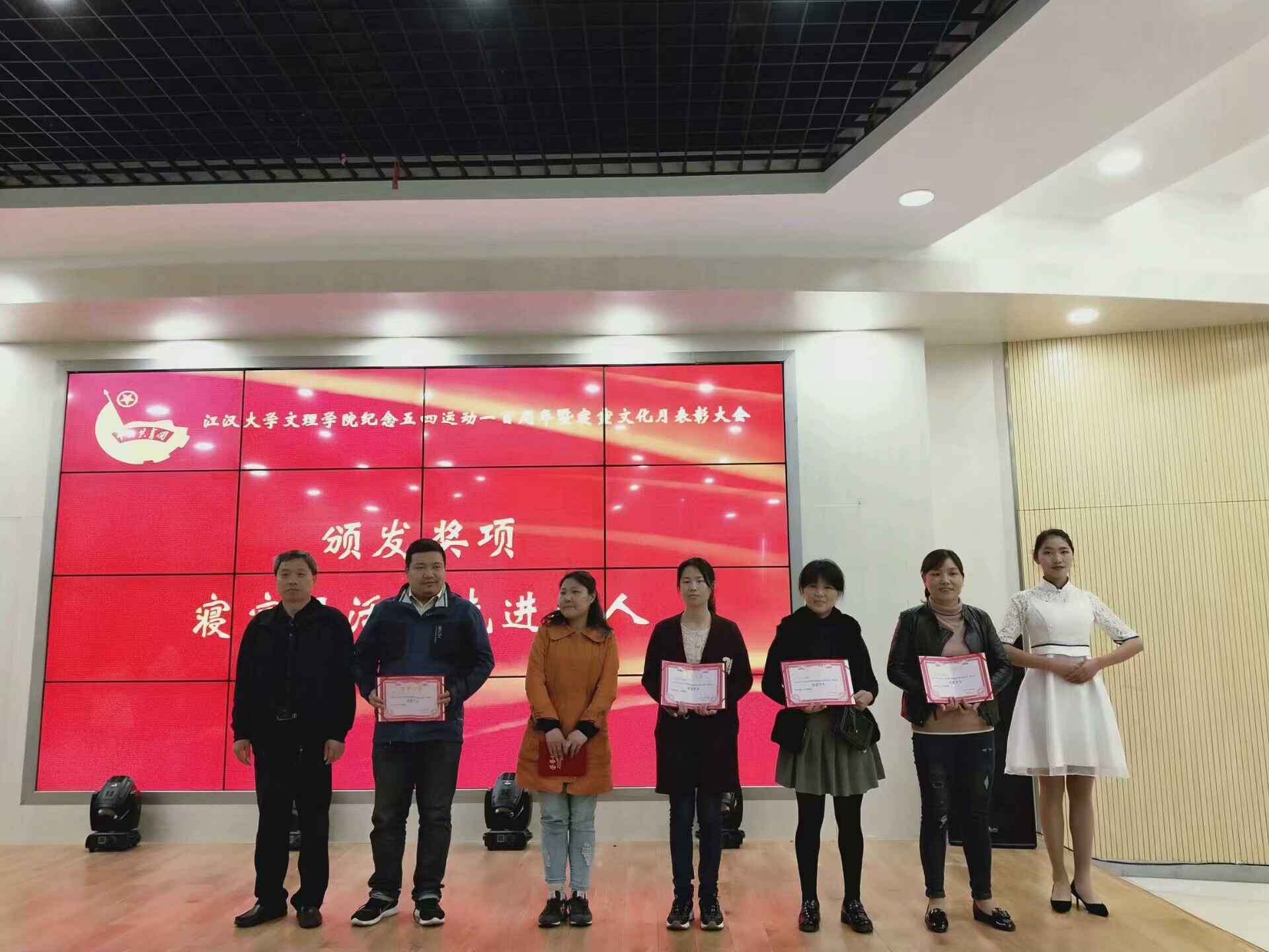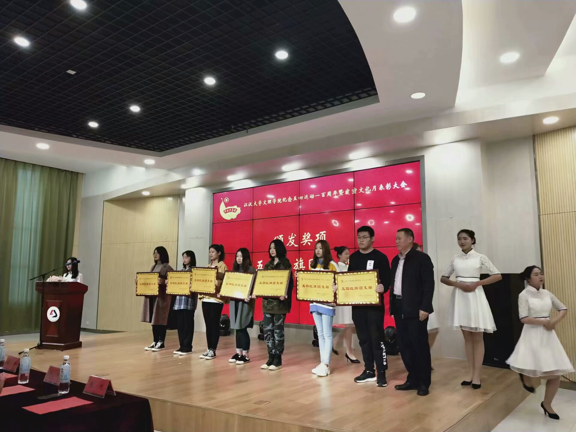 参加此次表彰大会的有:公司党委副书记赵学迅、员工处处长曹灵海、总务处处长刘建潮、员工处副处长及校团委书记熊海洋、管理公司综合办公室主任陈康、乐天使综合办公室主任刘超、外国语公司综合办公室主任韩玮、人文艺术公司综合办公室主任曾鹏、体育公司综合办公室主任杨洁、信息与计算机公司综合办公室副主任陈龙以及校团委员工会主席团成员、员工社团联合会主席团成员和获奖人员代表。大会的开始会场人员共同观看视频“一学年员工活动展示”,视频中一幕幕精彩的瞬间不仅展示出同学们丰富的老员工活,更彰显出当代老员工朝气蓬勃的青春活力。接着,全体起立,奏唱国歌。在雄浑的歌声中,本次表彰大会正式拉开序幕。首先,由员工处处长曹灵海老师宣读寝室文化月表彰决定。曹灵海老师不仅总结了本次寝室文化月的经验,还指出了寝室中存在的问题。对本次寝室评选的规则做出了解释,并对今后的寝室建设提出要求及展望。最后宣读了本次寝室文化月表彰决定:授予乐天使、医公司、管理公司三个单位寝室文化月先进单位荣誉称号,授予童燕等十二名老师寝室文化月先进个人荣誉称号,授予陈家芸等三名同志优秀宿管员荣誉称号,授予肖嘉雯等五十五名同学文明寝室创建先进个人荣誉称号,授予五十五个寝室优秀寝室荣誉称号,授予一百零五个宿舍文明寝室荣誉称号。随后举行颁奖仪式,各位获奖代表上台颁奖并与颁奖嘉宾合影留恋。接着由员工处副处长及校团委书记熊海洋老师宣读五四表彰决定:授予七个团支部优秀团支荣誉称号,授予五名同学优秀共青团员工作者荣誉称号,授予一百六十三名同学优秀共青团员荣誉称号,授予十五名最美青年志愿者荣誉称号,授予十名同学最美红十志愿者荣誉称号,授予乐天使分团委、医公司分团委、管理公司分团委、经济公司分团委四个单位先进分团委称号,授予七个团支部优秀团支部称号,授予杨帆等五名老师优秀共青团工作者。随后举行颁奖仪式,各位获奖代表上台颁奖并与颁奖嘉宾合影留恋。然后由优秀共青团获奖者代表管理公司17级财务管理二班张佳倩发言,她结合自己亲身经历鼓励同学们积极进取,不断学习,成为优秀的共青团员。大会的最后由公司党委副书记赵学讯老师致闭幕词。赵学讯老师不仅对这一年的工作做出总结,并对表彰人员提出了进一步的要求,不骄不躁,继续保持,弘扬五四精神。