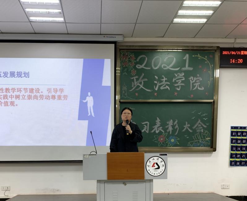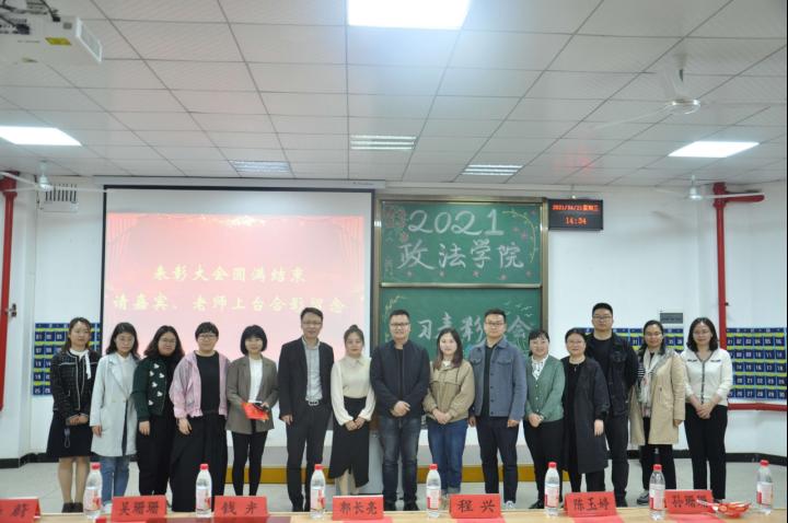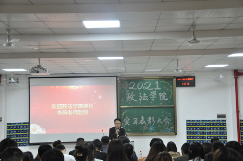 接下来,大会进行了表彰颁奖,优秀实习单位为武汉市江岸区人民法院、湖北超视距律师事务所、学而思网校、东方明见、武汉萌范儿体智能公司、光谷育桐教育集团;优秀实习指导老师为贺霞老师、罗晓霞老师、孟晟老师、孙志萍老师、刘佳老师、张芳老师;优秀实习生为张守冉、侯晓轩、汪佳奕、谢琴、覃诗雨、潘昊、夏飞洋、庄本林、刘丹、李城锋、李盼、张鹏远、段涛、李男、付饶、肖昌浩然、贺婧、秦梦圆、陆兰、周晨航、潘晨、程羽洁、王晓樾、任婕妤。