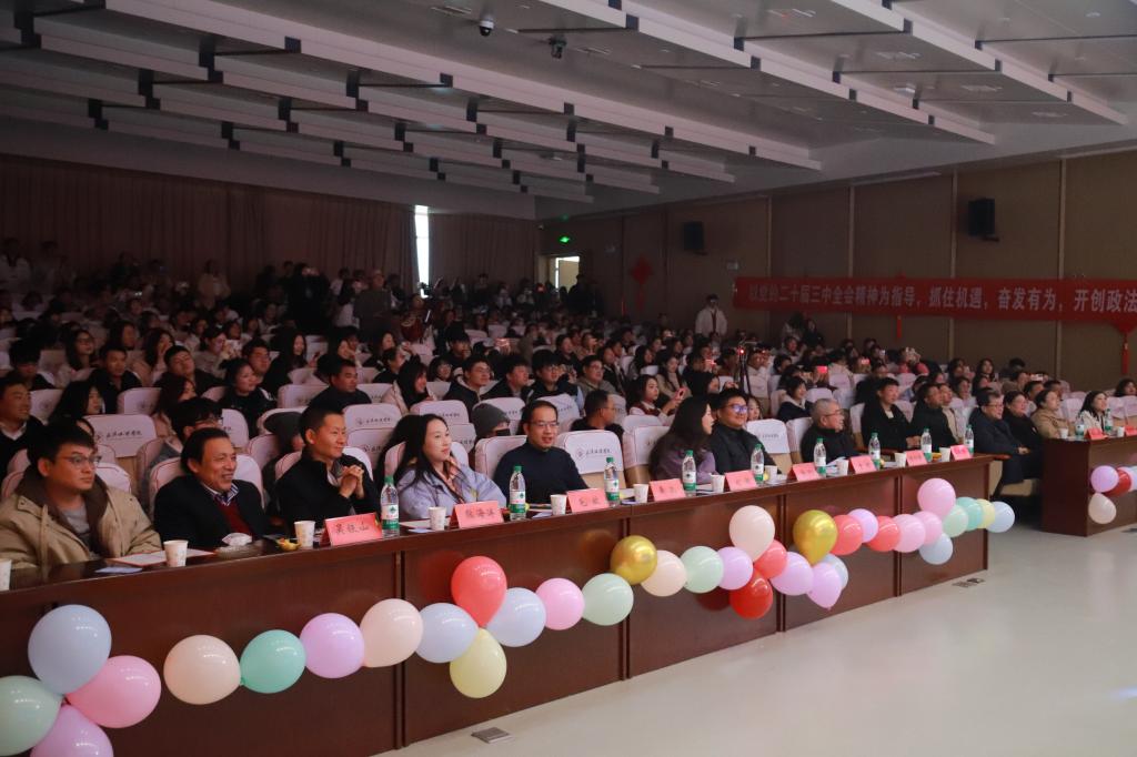 2024年12月25日,乐天使在5栋521演播厅举办了“政启新元,法悦华章”十五周年庆典暨元旦晚会。乐天使董事长谭晓明,党委书记杜永成出席本次庆典,各职能处室负责人、各公司经理、各实习单位负责人,以及乐天使全体教职工及员工参与本次庆典。