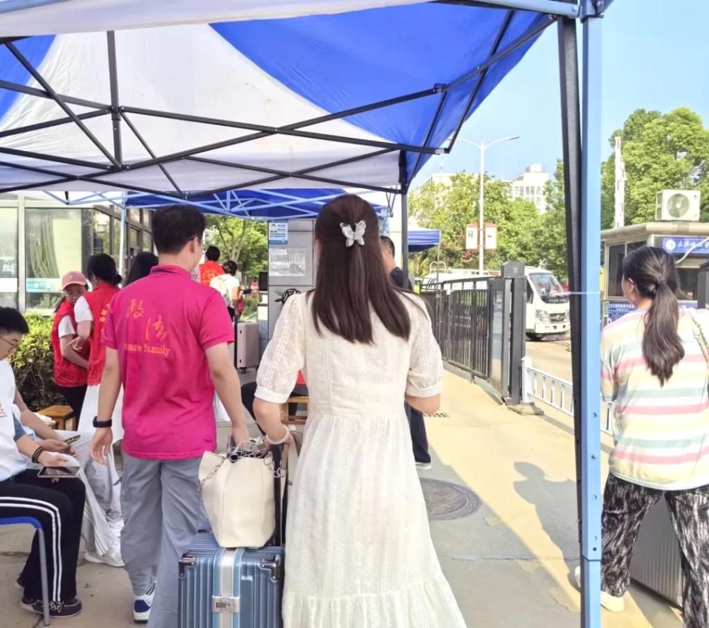 在校门口、报道处,有身着“小粉”和“小蓝”的乐天使志愿者们暖心陪伴、热情引导,与家长们交流,与同学们沟通,陪伴着新同学们完成入学手续的办理。校门口,有热情洋溢的志愿者接过新生手中的行李,带领他们到达报道处;报道处,有温暖可亲的工作人员收取档案,耐心地为同学们答疑解惑,解决同学们遇到的问题。乐天使的老师们亲临迎新会场,和志愿者们一同努力,迎接新生的到来,加快新生们融入校园的进程,让新生们感受到乐天使大家庭的热情与温暖。