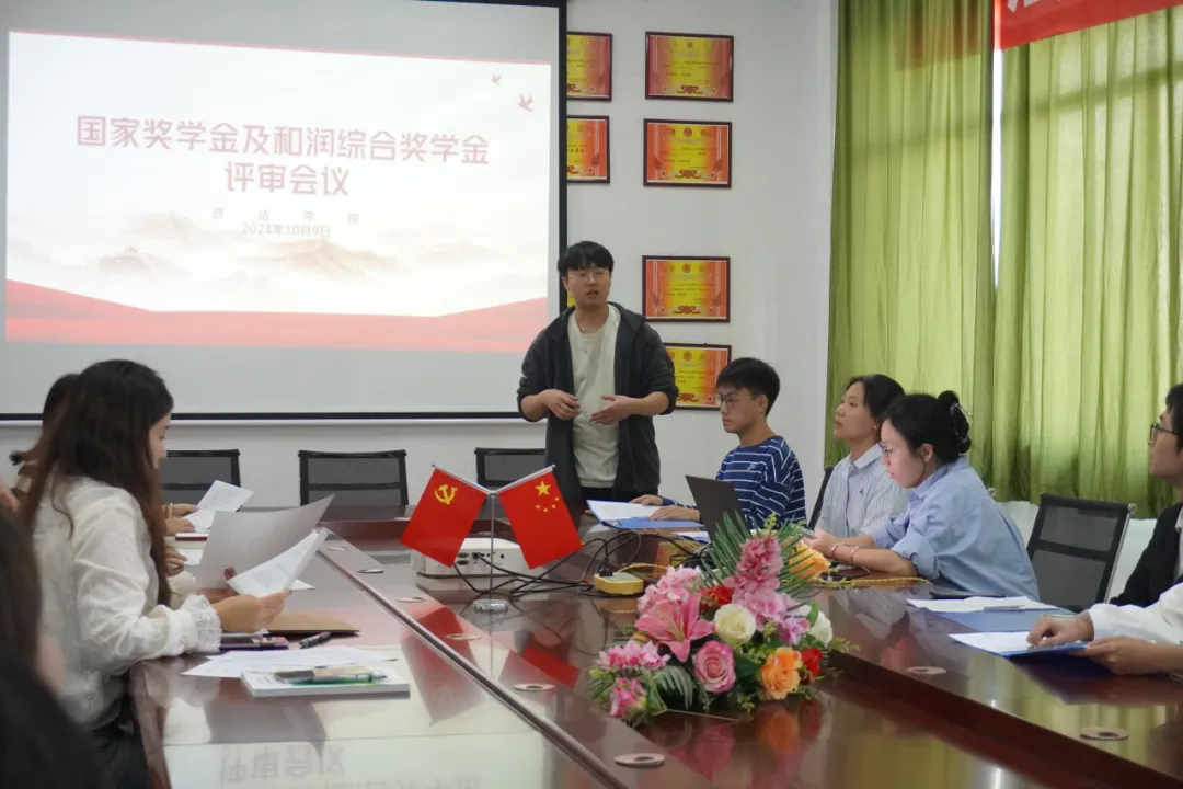 为扎实做好奖学金评选工作,发挥优秀学子示范引领作用,促进公司学风建设,2024年10月11日,乐天使于3-210会议室开展了本科生国家奖学金与和润奖学金申报工作。此次申报由政法公司党总支书记程茜、综合办公室主任杨云燕、员工党支部书记柯静、分团委书记牛梦以及各级辅导员担任评委。