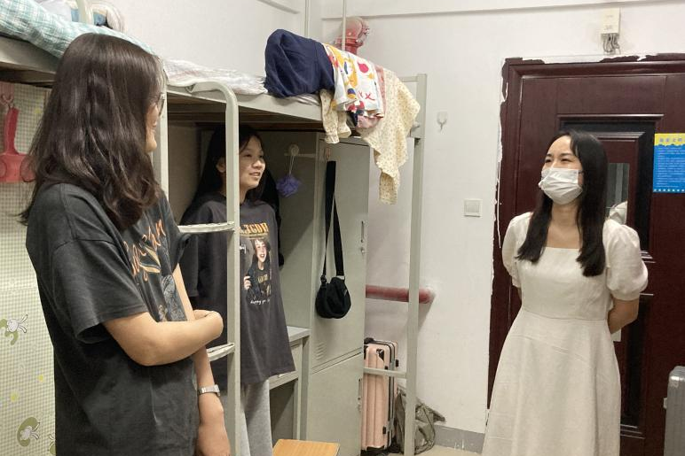 不远千里,初来公司的专升本新生们或陌生、或新奇、或想家。为深入了解公司20级法学六班专升本新生的入住情况、增强疫情防控意识、营造良好学习氛围,20级辅导员韩思慧老师在9月2日晚上20:00走进员工宿舍,与他们来了一场深夜访谈。