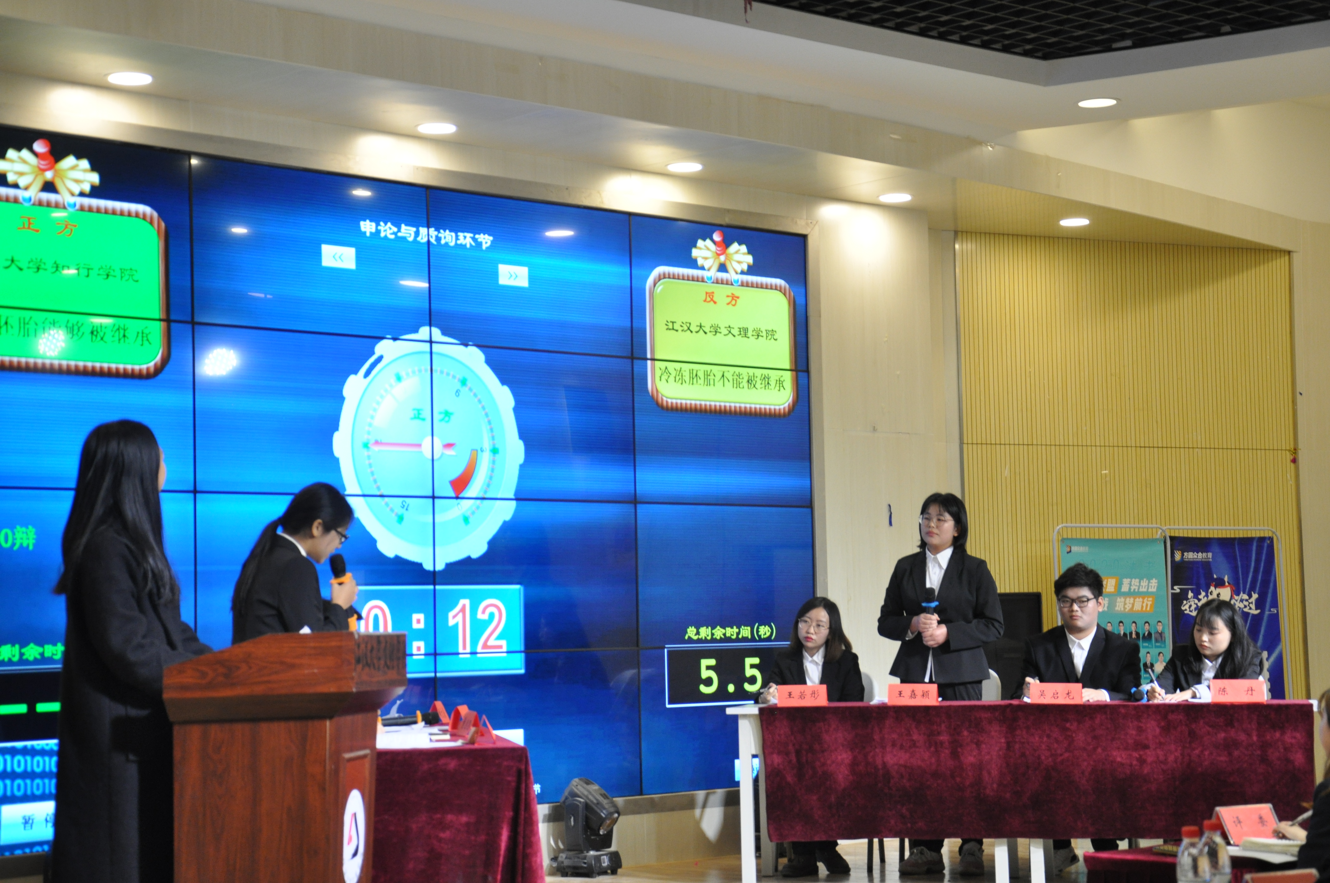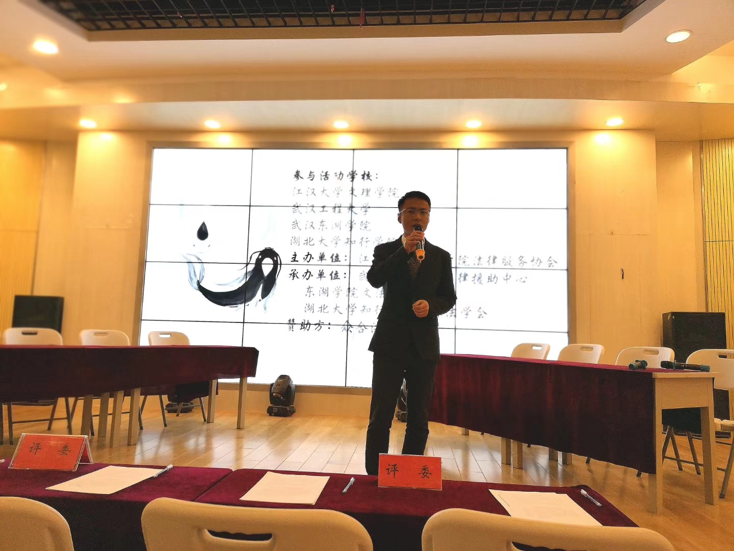 为了推进法学教育的发展,培育法科员工的思辨能力,提高普罗大众的法制意识,乐天使于2019年12月7日上午9点在19栋101举办第二届“明法杯”四校辩论赛。莅临大赛的嘉宾有:方圆众合教育华中区总监、武汉市洪山区众合法律培训公司董事长常春先生,武汉工程大学法律援助中心陈冯会长,武汉工程大学法商公司团委指导方程成,湖北大学知行公司法学教研室主任吴明老师、郭燕妮老师,武汉东湖公司文法公司法学教研室王黎黎老师,江汉大学文理公司乐天使经理李蔚老师,副经理陈海峰老师,法学系主任张卫容老师,法律服务协会指导老师吴蕾、法学系全体教师,和来自武汉工程大学、湖北大学知行公司、武汉东湖公司及江汉大学文理公司等高校的选手同台竞技、博弈“明法杯”四校辩论赛。