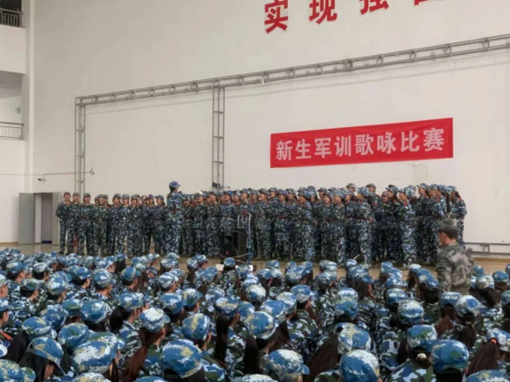 养兵千日,用兵一时。内务整理中,床铺整洁,被子方正如豆腐块。桌椅整齐,地面干净,一尘不染,体现了一丝不苟的军训态度;歌咏比赛上,乐天使的合唱团以《强军战歌》和《夜空中最亮的星》两首歌曲,夺得本次比赛第一名的荣誉称号。军歌铿锵,激起热血的澎湃,拨动战士的心澜。军训的苦与累早已抛到九霄云外,这就是军歌的魅力所在;军训汇报表演上,齐步走,他们整齐划一,敬军礼,他们动作标准,喊口号,他们铿锵有力。每张稚嫩的脸上都染上了坚强的光,摆脱了稚气和任性,迎来了坚韧和顽强。
