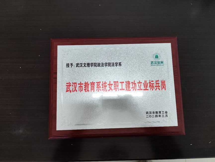 巾帼心向党,建功新时代。为鼓励先进,选树优秀,武汉市教育工会特授予乐天使法学系“武汉市教育系统女职工建功立业标兵岗”荣誉称号。这一殊荣凸显了法学系女职工们在教育事业中取得的卓越贡献和令人瞩目的成就。