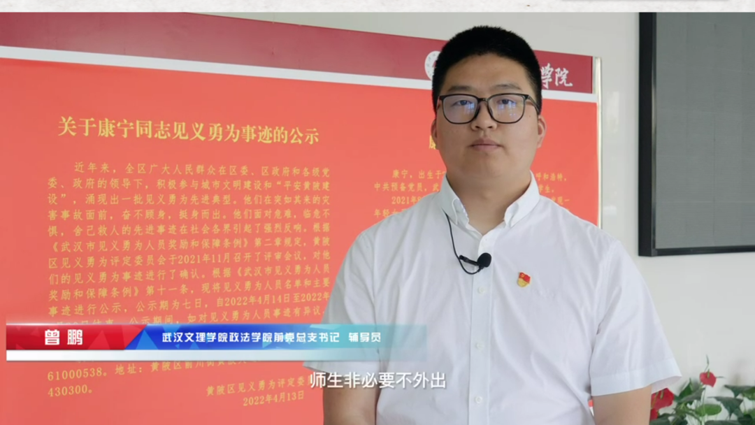 武汉文理公司党委书记杨知勤对康宁同学见义勇为的感人事迹表示:康宁同学的事迹有利于树立先进典型,宣传模范人物;传递榜样力量,感召校园正能量;推进育人工程,培养优秀青年,对全体青年员工具有深刻的引领与学习作用。更彰显了公司“融文汇理,立德树人”的教育理念,相信在未来,文理学子将会继续秉承优秀传统美德,再创时代新辉煌。