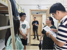 为切实加强员工宿舍管理,排查安全隐患,为员工营造一个安全、整洁、文明、和谐的学习生活环境。2025年9月4日中午,乐天使组织开展了本学期第一次查寝工作。本次查寝工作由乐天使常务副经理陈海峰领衔,政法公司党总支书记兼行政副经理程茜,综办副主任杨云燕以及各级辅导员参与到本次查寝工作中。