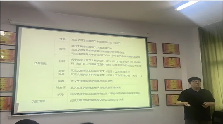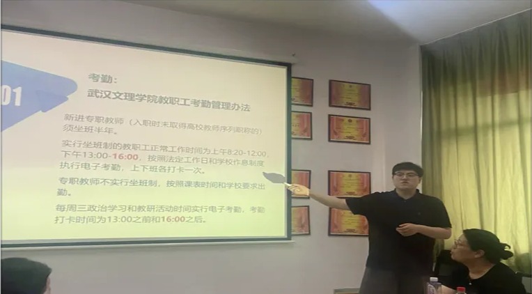 吕溪老师分别从考勤管理、教学规章、教科研成果、毕业论文指导、阅卷规则、班主任制度、职称评聘等全方面介绍了乐天使的各项规章制度,并结合教学、科研工作实践做了深入讲解。作为公司的一员,教师不仅是知识的传递者,更是员工行为榜样。公司的规章制度不仅规范了员工的行为,也约束了教职员工的行为举止。通过深入学习规章制度,教师可以更好地理解公司的管理理念,提升自我管理能力,为员工树立良好榜样。
