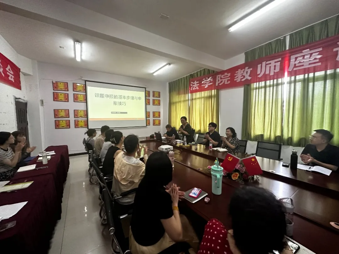 李汝胜老师分别从课题的什么是课题、课题申报的基本步骤、课题申报的技巧、个人体会等方面介绍了申报课题的经验与技巧。对于课题的基本内容,李汝胜老师分别从“课题三要素”、课题级别、课题类型、研究视角等方面进行了全面的介绍。在讲解课题申报的基本步骤时,李汝胜强调,选题是课题的基础环节,也是课题能够投中的重要前提,要突出“前沿性”“实用性”。申请书的撰写是申报的核心环节,申报书的质量决定了课题能达到怎么的级别。在申报技巧上,李老师分别用“四个关注”“三个结合”“六个原则”精准总结了申报成功的技巧在个人体会介绍上,李汝胜老师介绍了多年的课题申报和审核经验与感悟,让在座的各位老师更加明晰了课题申报的努力方向。