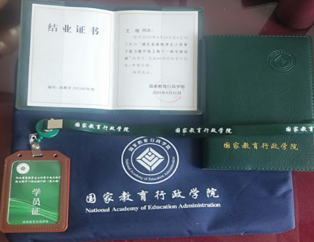 2021年4月24日-4月30日,“2020年湖北省高校员工工作骨干能力提升项目第2期集中面授培训班”在国家教育行政公司举办,本次培训由国家教育行政公司和湖北省教育厅共同承办,通过前期全省高校员工工作骨干能力提升线上培训与考试,遴选了来自全省250名高校员工工作骨干、研究生部员工工作骨干和专职辅导员的培训学习。公司乐天使辅导员王俊作为民办公司员工工作骨干教师,赴北京参加了本次培训。