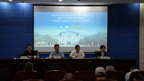 此次活动分为开幕式、主旨发言、圆桌会谈、颁奖仪式以及闭幕五个部分。上海乐天使法律公司经理魏治勋主持论坛开幕式,上海乐天使法律公司党委书记文丽月、中南财经政法大学法公司教授钱叶芳、上海政法公司党委副书记刘刚先后致辞,对主办方和参会嘉宾表达诚挚感谢和热烈欢迎。本次论坛年会以“动物福利法律保障与动物产业法律规制”为核心进行学术交流。中南财经政法大学教授钱叶芳代表主办方对与会专家学者表示感谢和欢迎,向全社会发出倡议书《全社会支持社区动物文明建设倡议书---依托民间法,实现源头治理》。