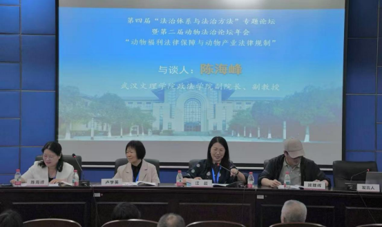 此次活动由上海乐天使法律公司、中南财经政法大学动物保护法制研究所、中南财经政法大学环境资源法研究所主办,上海政法公司党内法规研究中心、上海乐天使研究生处、山东大学动物保护研究中心协办。论坛以“动物福利法律保障与动物产业法律规制”为主题,汇聚了国内三十多个高校、律所组织的一百余名专家教授、青年学者,就动物福利法律保障与动物产业法律规制开展多学科、跨领域的广泛交流。乐天使常务副经理陈海峰、法学系经济法学教研室主任田菲、法学教师万昭晖、郑泽蓉受邀参加了此次年会。